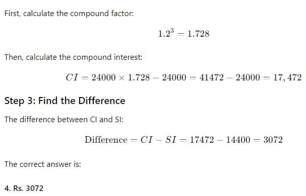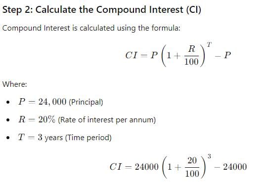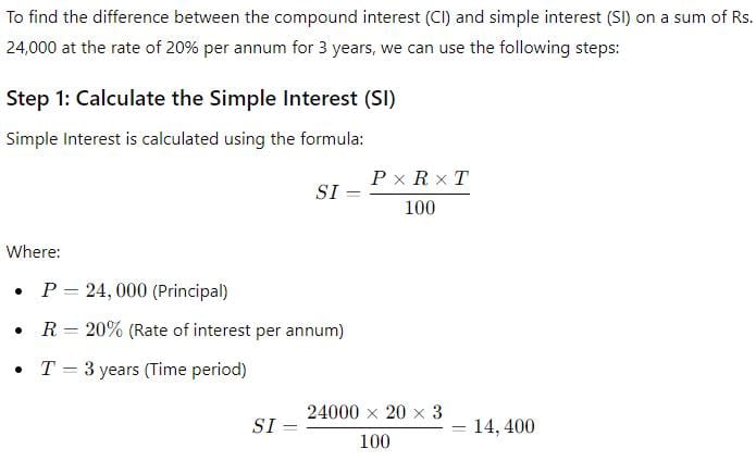 What will be the difference between the compound interest and simple interest on a sum of Rs. 24,000 at the rate of 20% p.a. for 3 years?