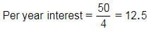 A sum becomes 184% of itself in four years when the rate of compound interest was different for different years. The rate of interest in the fourth year was 14.28% p.a. and the amount of interest in the second, third and fourth years was the same. If the interest of the first year was Rs. 450, what was the value (in Rs.) of the sum?