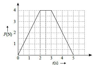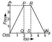 The given graph represents the variation of magnitude of net force (F) exerted in x direction on a 2.50 kg particle with time. On the basis of given graph, fill in the blanks by selecting the correct option.