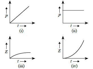 Power associated with force is equal to, P = Fv = Fat Thus, graph of P versus t will be a straight line. Hence, graph (i) is correct. And graphs (ii) and (iii) are incorrect.