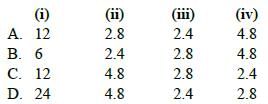 The impulse of the force is (i) kg ms–1. Final velocity of the particle, if it is originally at rest is (ii) ms–1. Its final velocity if its original velocity is –2.0 ms–1, is (iii) m s–1. The average force exerted on the particle for the time interval 0 to 5 s is (iv) N.