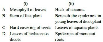 The plant tissues shown in the given figure (i) and (ii) are parenchyma and sclerenchyma respectively. Parenchymatous tissue is present in mesophyll of leaves whereas sclerenchymatous tissue is present in husk of coconut.