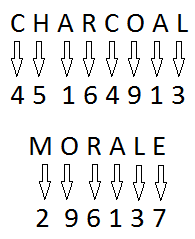 If in a certain language, CHARCOAL is coded as 45164913 and MORALE is coded as 296137, then how is ALLOCHRE coded in that language?