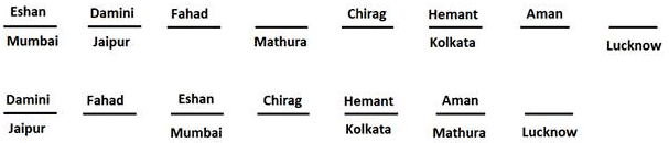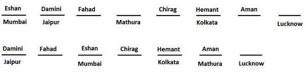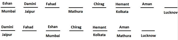 • Eshan was working in Mumbai and was 3rd to the left of the one who was working in Mathura.