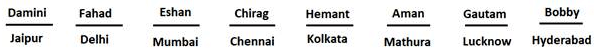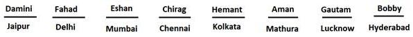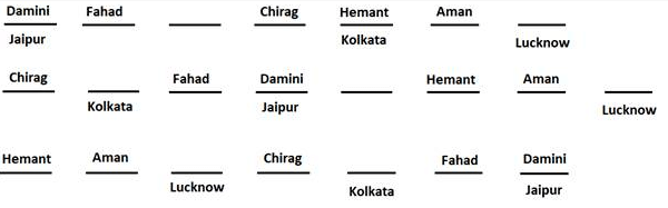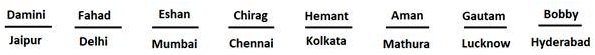 • Damini's neighbour worked in Delhi and Damini was working either in Kolkata or in Jaipur.