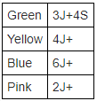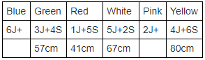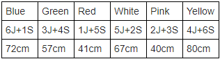Directions: 6 chairs were kept in a row facing North. The chairs were of different colour white, red, yellow, green, blue and pink not necessarily in the same order. These chairs had different number of jackets and shirts stacked on them, number ranged between 1-6. Every chair had 1 garment of each kind. A jacket when folded and stacked occupied 11cm and a shirt occupied 6cm.