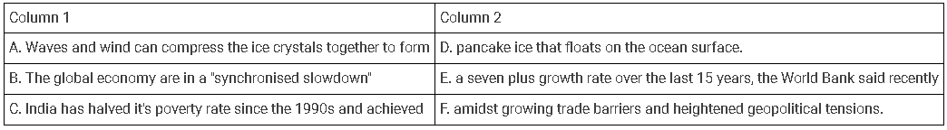 Match the statements from column 1 with column 2 and find which of the following pair of statements given in the options make contextually and grammatically correct sense.