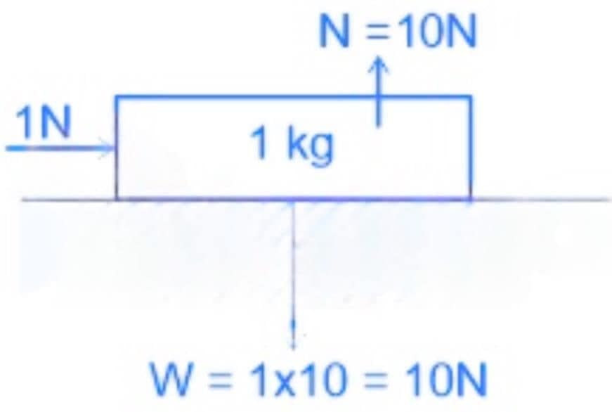 An external force of 1 N is applied on the block of 1 kg as shown in the figure. The magnitude of the friction force Fs is (where, μ = 0.3, g = 10 m/s2):