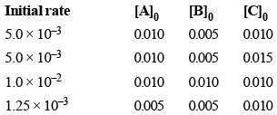 3A + 2B + C ⟶ Products, at different initial concentrations are given below: