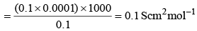 The conduct of a salt solution (AB) measured by two parallel electrodes of area 100 cm2 separated by 10 cm was found to be 0.0001 W–1. If volume enclosed between two electrode contain 0.1 mole of salt, what is the molar conductivity (S cm2 mol–1) of salt at same concentration :