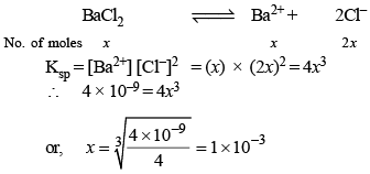 Solubility product of BaCl2 is 4 × 10–9 mol/L. Its solubility would be :