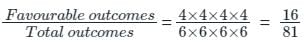 An unbiased die with faces marked 1, 2, 3, 4, 5 and 6 is rolled four times. Out of four face values obtained, the probability that the minimum face value is not less than 2 and the maximum face value is not greater than 5 is