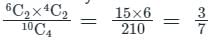 A box contains six red balls and four green balls. Four balls are selected at random from the box. What is the probability that two of the selected balls will be red and two will be green?
