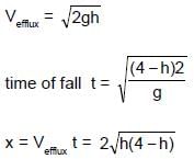 A water tank stands on the roof of a building as shown. Then the value of 'h' for which the distance covered by the water 'x' is greatest is -