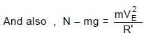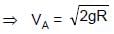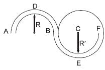 In the figure shown ADB & BEF are two fixed circular paths. A block of mass m enters in the tube ADB through point A with minimum velocity to reach point B. From there it moves on another circular path of radius R'. There it is just able to complete the circle.
