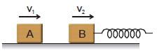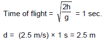 Figure shows block A of mass 0.2 kg sliding to the right over a frictionless elevated surface at a speed of 10 m/s. The block undergoes a collision with stationary block B, which is connected to a nondeformed spring of spring constant 1000 Nm–1. The coefficient of restitution between the blocks is 0.5. After the collision, block B oscillates in SHM with a period of 0.2 s, and block A slides off the left end of the elevated surface, landing a distance 'd' from the base of that surface after falling height 5m. (use π2 = 10; g = 10 m/s2). Assume that the spring does not affect the collision.