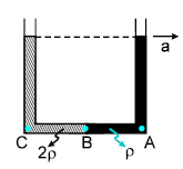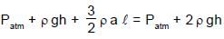A U-tube of base length “l” filled with same volume of two liquids of densities ρ and 2ρ is moving with an acceleration “a” on the horizontal plane. If the height difference between the two surfaces (open to atmosphere) becomes zero, then the height h is given by: