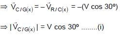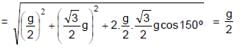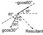 Two particles start together from a point O and slide down straight smooth wires inclined at 30º & 60º to the vertical & in the same vertical plane as in figure. The relative acceleration of second with respect to first will be (in magnitude & direction) as :