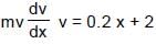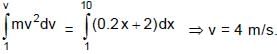 A particle A of mass 10/7 kg is moving in the positive direction of x. Its initial position is x = 0 & initial velocity is 1 m/s. The velocity at x = 10 is: (use the graph given)