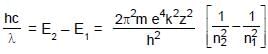 An electron in a hydrogen like atom makes transition from a state in which its de-Broglie wavelength is λ1 to a state where its de-Broglie wavelength is λ2 then wavelength of photon (λ) generated will be : where m is mass of the electron, c is speed of light in vaccum.
