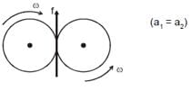 A cylinder rotating at an angular speed of 50 rev/s is brought in contact with an identical stationary cylinder. Because of the kinetic friction, torques act on the two cylinders, accelerating the stationary one and decelerating the moving one. If the common magnitude of the acceleration and deceleration be one revolution per second square, how long will it take before the two cylinders have equal angular speed ?