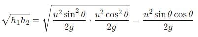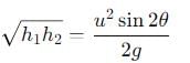 The range R of projectile is same when its maximum height are h1 and h2. What is the relation between R, h1 and h2?
