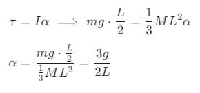 A rod PQ of mass M and length L is hinged at end P. The rod is kept horizontal by a massless string tied to point Q as shown in the figure. When the string is cut, the initial angular acceleration of the rod is: