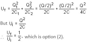 A capacitor of capacitance C1 is charged by connecting it to a battery. The battery is then removed and this capacitor is connected to a second uncharged capacitor of capacitance C2. If the charge gets distributed equally on the two capacitors, then the ratio of the total energy stored in the capacitors, after connection to the total energy stored in them before connection, is