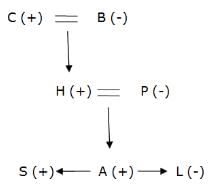 There are seven members in three generations of a family. The family has two married couple. S is the grandson of B, who has only one son. B is the mother-in-law of P. A and L are siblings of S. L is the granddaughter of C. A is the son of P. H is one of the family members. H is married to P.