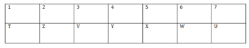 Seven friends T, U, V, W, X, Y and Z are sitting in a straight line facing north. W sits fifth to the right of T. W does not sit at any of the extreme ends. Two people sit between Z and X. Y sits third to the left of U. Y sits exactly in the middle. Z is not an immediate neighbour of Y.