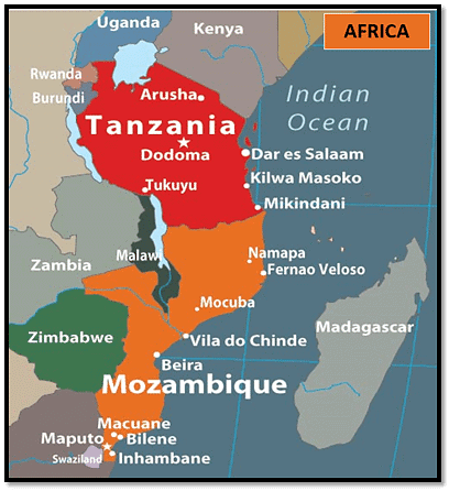 Tanzania with whom the Indian Navy conducted the first edition of India-Mozambique-Tanzania Trilateral Exercise (IMT TRILAT) is bordered by which of the following countries?