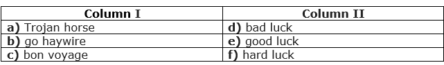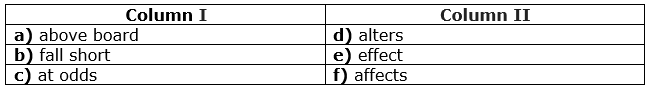 In the following questions, a sentence is given with two blanks, which is followed by a table. In the table, two columns are given ‘column I’ and ‘column II’. In ‘column I’ three phrases are given for the first blank and in ‘column II’ three words are given for the second blank. You have to choose the correct pair of words from the given options and mark it as your answer.