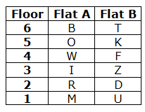 Note I: Each floor has 2 flats viz., flat A and flat B. Flat A is to the west of Flat B.