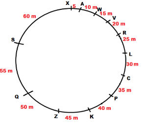 Circumference of circle is 390 m and persons are sitting in consecutive multiples of 5.