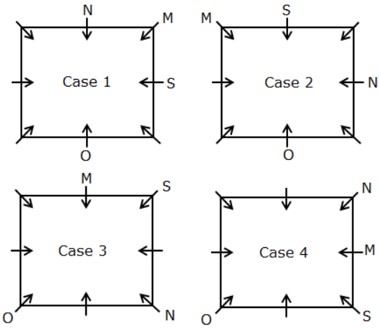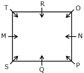 Eight persons viz. M, N, O, P, Q, R, S and T are sitting around a square table such that all of them are facing towards the center, but not necessarily in the same order. Four persons are sitting in the corners whereas four persons are sitting in the middle of the sides of the table. After throwing a dice, each person is moving in a certain direction as per the given conditions.