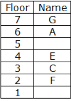Seven persons – A, B, C, D, E, F, and G are living in seven floored building marked 1 to 7 from bottom to top respectively. Who among the person lives immediately below C?