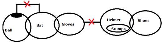 Ball @ Bat # Gloves; Gloves $ Helmet ? Stumps; Helmet # Shoes