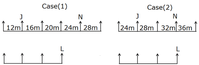 J sits in front of the one who sits second to the left of L. J sits 60m to the left of N but none of them sits at the extreme end.H sits three places away from B, who sits 42m to the right of C. The number of persons sitting to the left of H is one less than the number of persons sitting to the right of I but both are not sitting in the same row. Only two persons sit between I and A who sits in front of C. The person sitting in front of H sits second to the left of G. At least two persons are sitting to the left of G. As many persons sit between E and G as between L and K. Neither K nor E sits adjacent to I. D neither sits adjacent to F nor sits at the extreme end. M sits to the right of I.