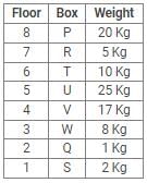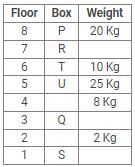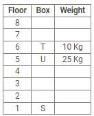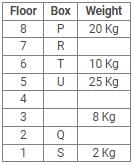Eight boxes – P, Q, R, S, T, U, V and W were placed in an almirah of eight shelves. The bottom shelf was numbered 1 and the topmost shelf was numbered 8. Each of these boxes contained different amount of Sugar – 25 kg, 20 kg, 17 kg, 10 kg, 8 kg, 5 kg, 2 kg and 1 kg but not necessarily in the same order.