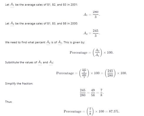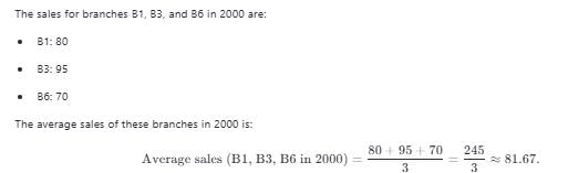 What percent of the average sales of branches B1, B2 and B3 in 2001 is the average sales of branches B1, B3 and B6 in 2000?
