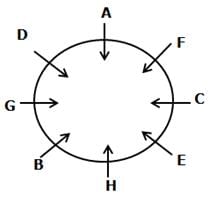 Q. Eight persons- A, B, C, D, E, F, G, and H are sitting on the circular table facing the centre but not necessarily in the same order. Who among the person sits second to the left of E?