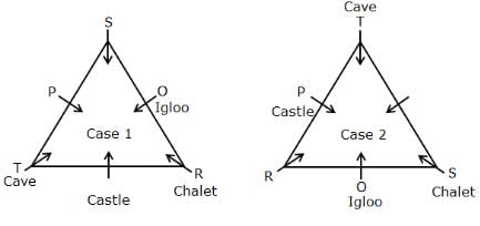 The one who lives in Chalet sits at the corner of the table. Three persons sit between the one who lives in Chalet and T, who sits to the immediate left of the one who lives in Castle. O sits second to the right of the one who lives in Castle. The position of the one who lives in Chalet with respect to T is the same as the position of P with respect to O, who sits to the immediate left of S. The one who sits second to the right of S lives in Cave. The number of persons between the one who lives in Cave and S is one more than the number of persons between R and the one who lives in Igloo, when counted from the right of both S and R. Q neither lives in Villa nor Castle.