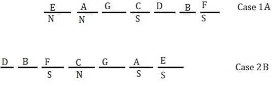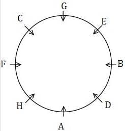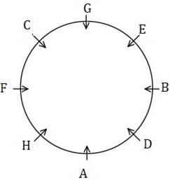Eight persons A, B, C, D, E, F, G and H are sitting in a circular and facing the centre and then after some time they sit in a straight line some of them are facing north and some of them are facing south. C is 3rd to the left of A in circular and 2nd to the right of A in line. Three persons are sitting between A and B in line. A and C are facing different directions. C and G are neighbors in both arrangements and neither of them is at any ends in line. B is facing opposite to F in circular and F is facing south in line. F is 2nd to the right of G in circular. One of the neighbors of A in linear is 3rd to the right of A in circular. C is 3rd to the right of E in linear. E is not neighbor of A in circular and B in linear. H sits one of the ends but not neighbor of C in linear. D is 2nd to the right of F in linear. Not more than two persons sit between G and F in line. At least one person sits between D and H in line. D is not neighbor of F in circular. B’s neighbors are facing same directions and C’s neighbors are facing different directions in line. Not more than 4 persons are facing south.
