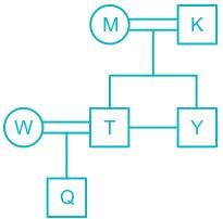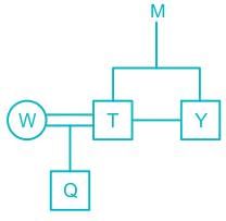 Q. If W # Q @ T & Y @ M % K, then how is K related to W?