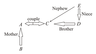 A is mother of B. B is son of C. C is brother of D. D is niece of E. How is C related to E?