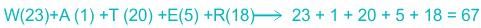In a certain code, JUG is coded as 38 and WATER is coded as 67. How will GLASS be coded in the same code?