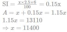 A person borrows certain amount of money at the rate of 2.5% per month. If he pays Rs. 13110 after 6 months to clear his dues then find the amount of interest paid by the person.