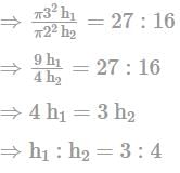 The radius of two right circular cylinders are in the ratio 3:2 and the of their volumes is 27:16. What is the ratio of their heights?
