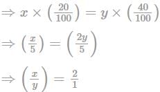 20% of a number is 40% of another number. What is the ratio of the first number to second number?