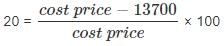 An ornament is sold for Rs. 13,700 at a loss of 20%. What is its cost price?